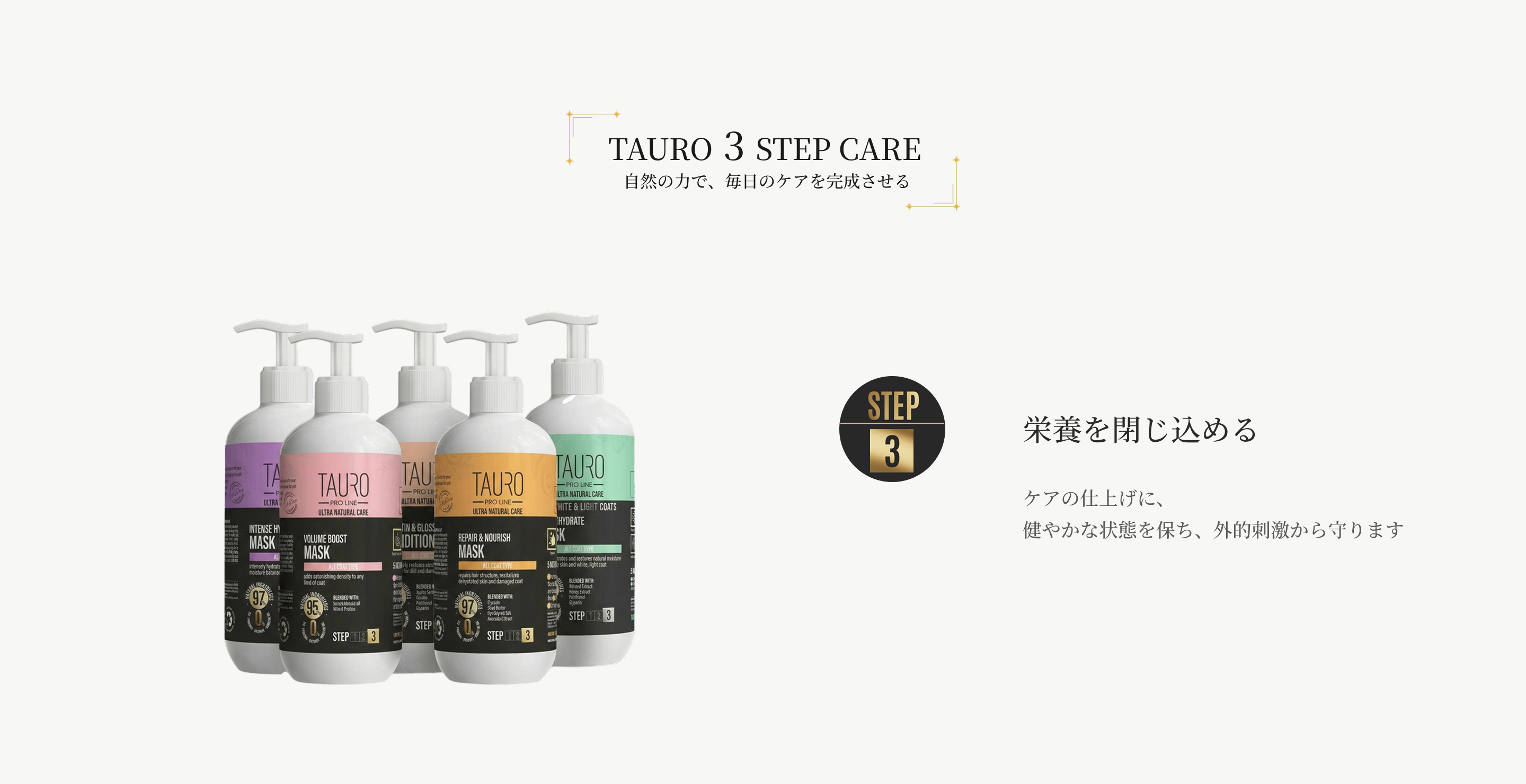 すべての製品は、原料選定から製造工程に至るまで、品質と安全性を重視して開発されています。サロン品質のケアを特別なものにするのではなく、ご家庭の日常に自然に寄り添う選択肢として、TAURO PRO LINEは、日本のお客さまにも、愛犬との時間を支える確かなケアをお届けしたいと考えています。